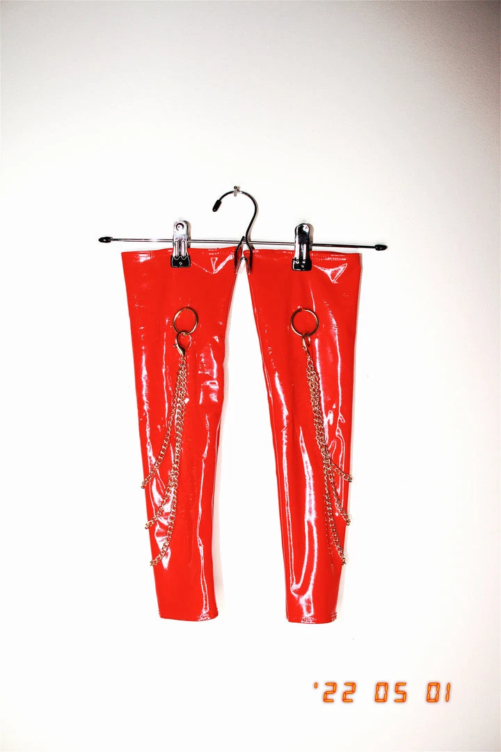 WHAT IT IS: Red shiny PU coating on white poly spandex 90% Poly, 10% Spandex, PU Coating.