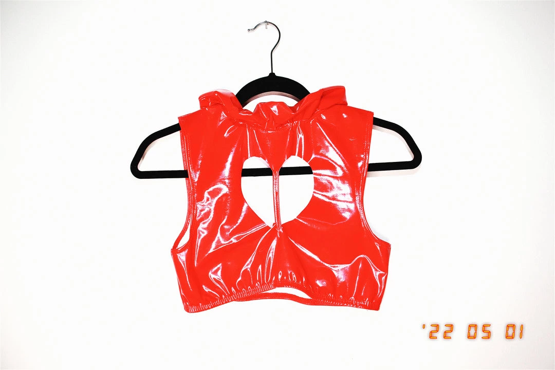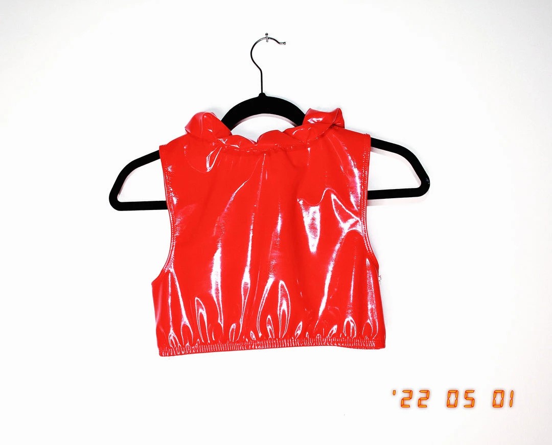 WHAT IT IS: Red shiny PU coating on white poly spandex 90% Poly, 10% Spandex, PU Coating.