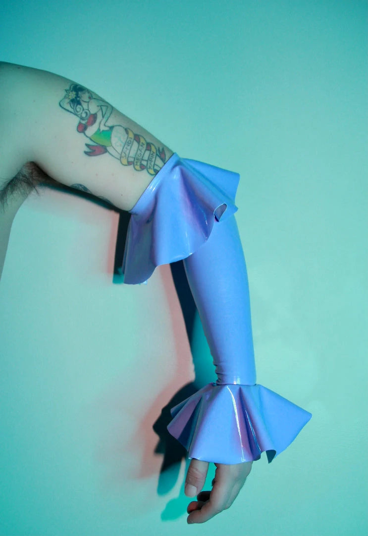 WHAT IT IS: Giving you all your faux latex fantasies in a shiny PU coating on white poly spandex 90% Poly, 10% Spandex, PU Coating.
