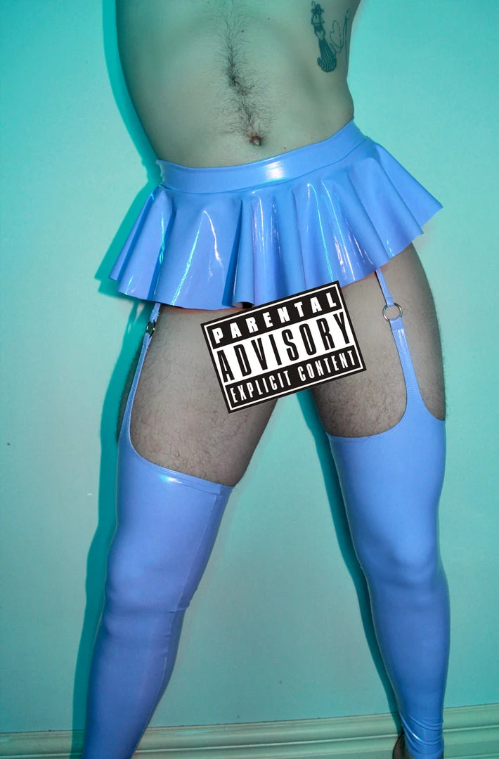 WHAT IT IS: Giving you all your faux latex fantasies in a shiny PU coating on white poly spandex 90% Poly, 10% Spandex, PU Coating.