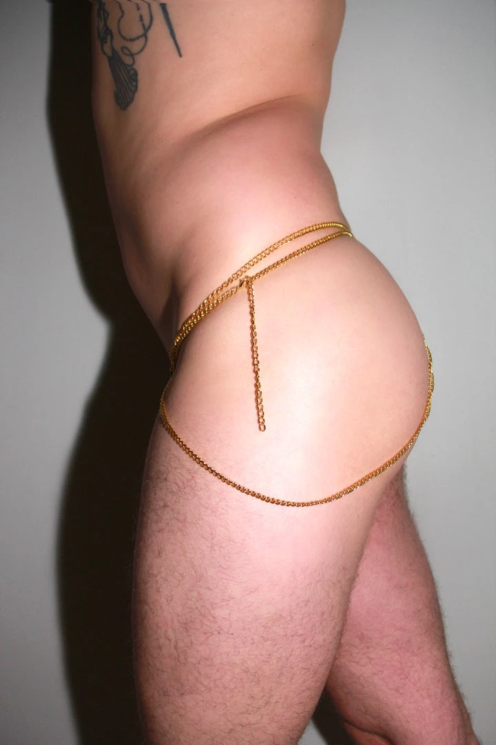 WHAT IT IS: Made of a light, soft, stretch Velvet . This strong material is soft to the touch stretchy, comfortable and breathable. 90% Polyester 10% Spandex. The Olive You Chain Thong has a adjustable Clasp to make it easier getting into.