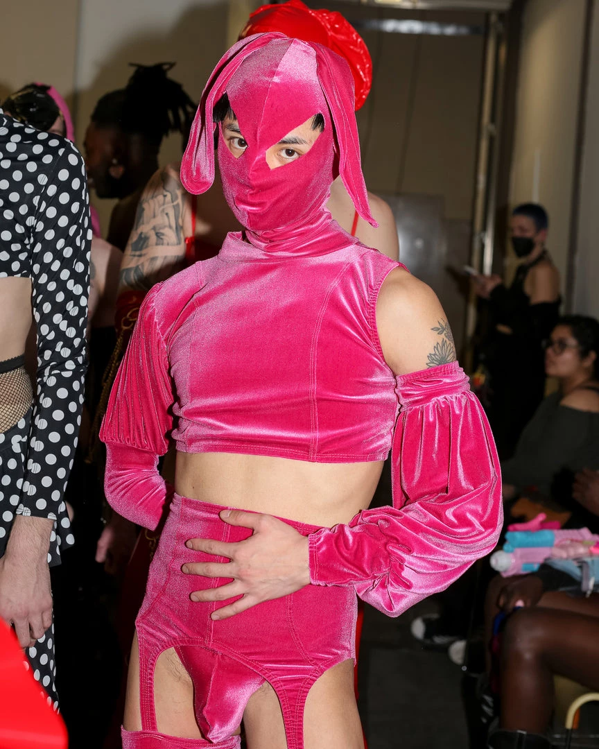 PURCHASES INCLUDES CHAPS, THONG, TOP, SLEEVE & HOOD